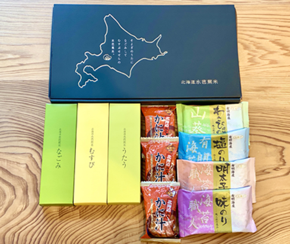 「北海道かに汁、米、味海苔MIX」3,000円(税抜)